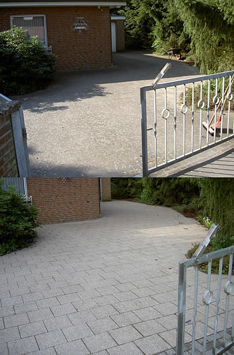 Vorher-Nachher Ansichten der Cleanforce Pflaster- und Terrassenreinigung