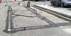 Cleanforce entfernt Fahrbahnmarkierungen bei Airbus in Finkenwerder.